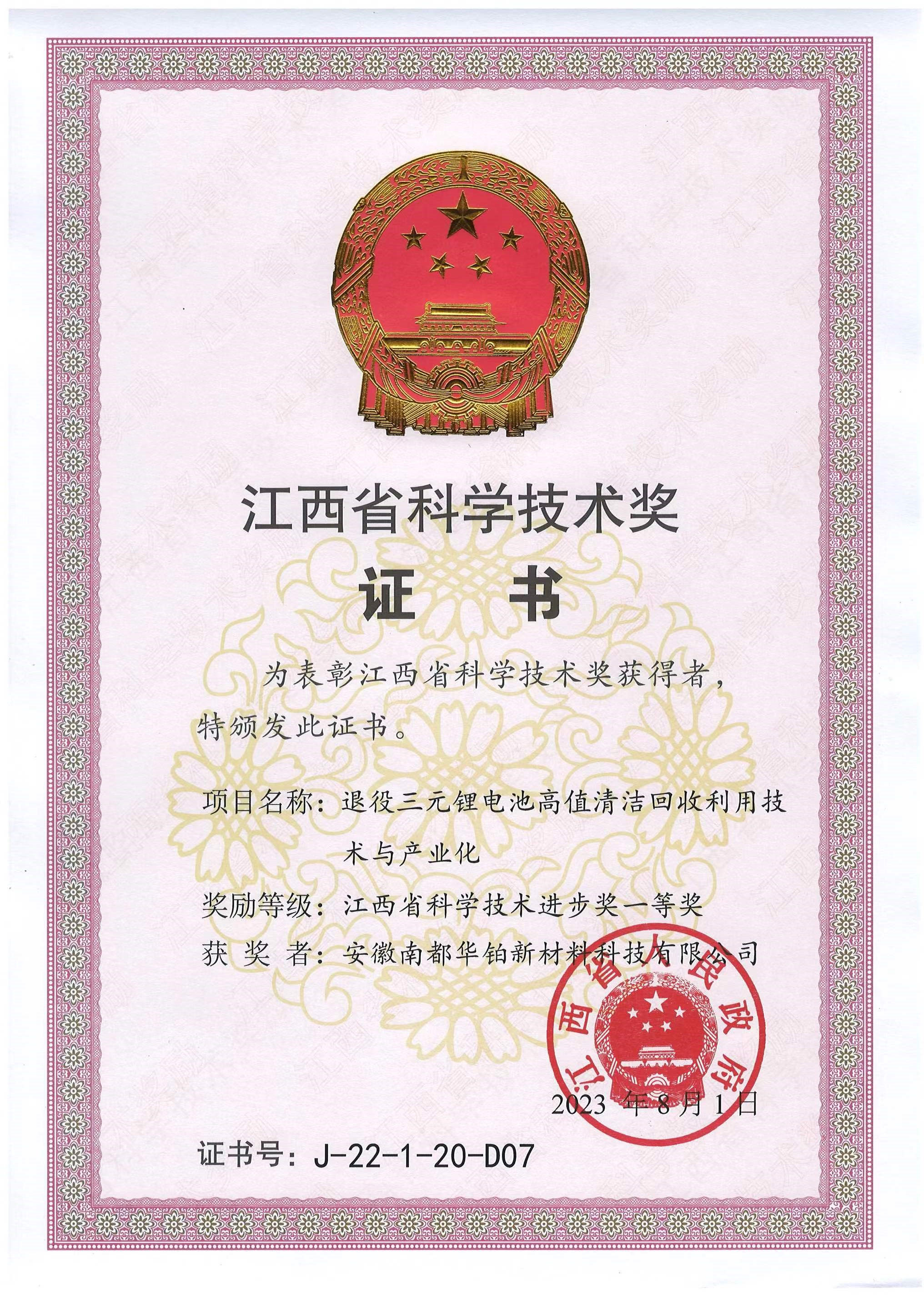 ÈÕǰ£¬£¬£¬£¬ £¬£¬£¬½­Î÷Ê¡¿ÆÑ§ÊÖÒÕÌüÐû²¼ÁË2022Äê¶È½­Î÷Ê¡¿ÆÑ§ÊÖÒÕ½±»ñ½±Ãûµ¥¡£¡£¡£ ¡£¡£¡£¡£Óɰ²»ÕCQ9¡¤µç×Ó¹Ù·½ÍøÕ¾»ª²¬ÐÂÖÊÁϿƼ¼ÓÐÏÞ¹«Ë¾ÍŽáÉ걨µÄ¡¶ÍËÒÛÈýÔªï®µç³Ø¸ßÖµÇå½à½ÓÄÉʹÓÃÊÖÒÕÓ빤ҵ»¯¡·ÏîÄ¿ÈÙ»ñÊ¡¿ÆÑ§ÊÖÒÕǰ½ø½±Ò»µÈ½±¡£¡£¡£ ¡£¡£¡£¡£