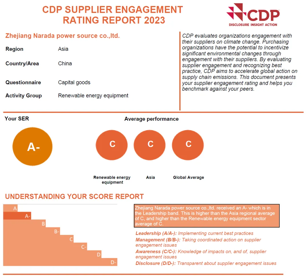 因在推动供应链降碳方面取得显著效果,,,,,,,,公司上榜了CDP“2023供应商加入度A级名单”,,,,,,,,显著高于全球、亚洲和行业平均水平“C级”,,,,,,,,证实晰公司在推动整个价值链天气行动中,,,,,,,,取得了优异效果。。。。。。。