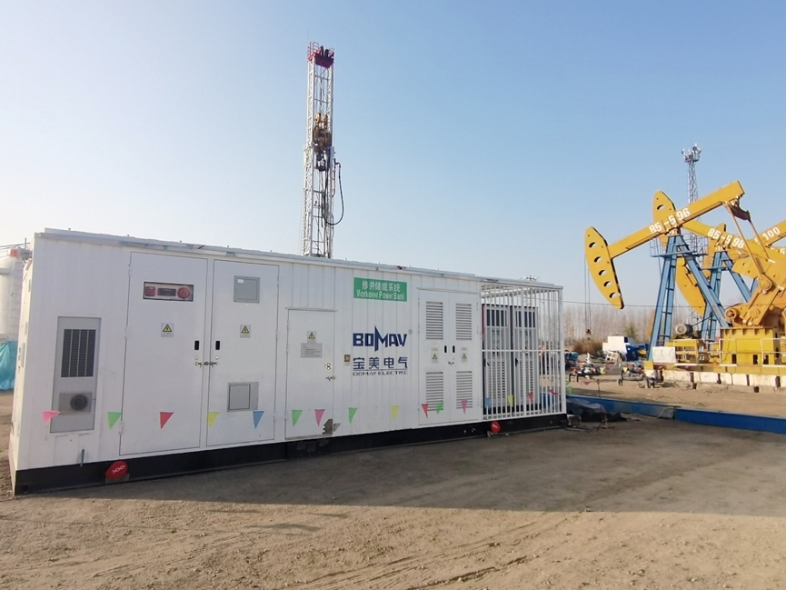 在另一个辽河油田项目中,,,,,,,,宝美电气与CQ9·电子官方网站团结建设的储能系统,,,,,,,,可自动识别钻修井作业工况,,,,,,,,动态匹配发电机启息兵略,,,,,,,,实现恒压电流输出,,,,,,,,镌汰了能源铺张。。。。。。。。储能系统的建设,,,,,,,,可为单口钻井作业节约20万元左右用度。。。。。。。。